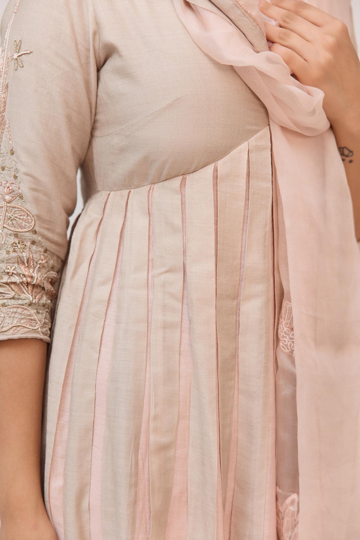 Lotus Bloom Anarkali Set With Dupatta In Warm Grey